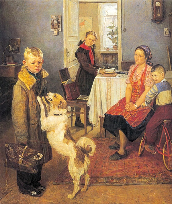 5. Что должно висеть на стене за спиной мальчика в картине "Опять двойка" Федора Решетникова?