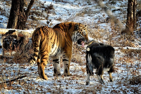 Два месяца назад зоопарк отправил живого козла на съедение тигру, но, по неизвестной причине, тигр так и не притронулся к «еде».