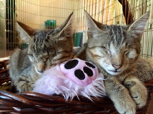 «Они медленно учатся обходиться без зрения, спускаться и подниматься по ступенькам. В данный момент они живут у меня дома, на чердаке. Как и все кошки, они любят играть и исследовать мир вокруг себя», - рассказывает девушка.