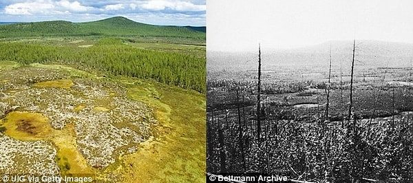 Взрыв имел место 30 июня 1908 в бассейне Подкаменной Тунгусски вдали от населённых мест. Свидетели утверждали, что «небо как будто разделилось надвое». Ученые говорят, что это могли быть комета или астероид, хотя доказательств тому не было найдено. Иные предложили НЛО, или некую сверхъестественную деятельность, пишет Чейнни Макдональд для Dailymail.com.