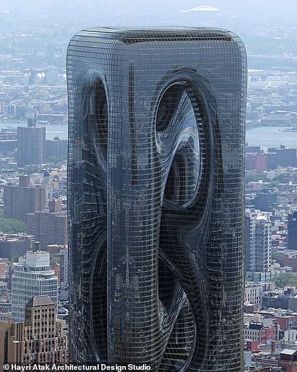Сногсшибательные визуализации были представлены для небоскреба в Нью-Йорке в научно-фантастическом стиле и высотой 210 м, который выглядит так, будто он был сделан из пластилина Play-Doh, со скрученными трубчатыми конструкциями, свернутыми внутри возвышающейся рамы.