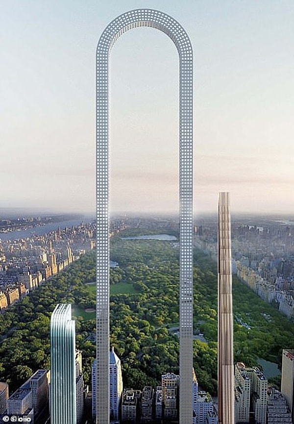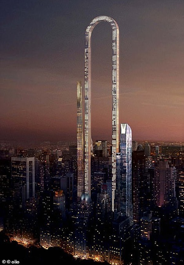Концептуальные чертежи проекта, описываемые как «самое длинное здание в мире» и протяженностью 1220 метров, показывают небоскреб, достигающий вершины, а затем изгибающийся вниз.