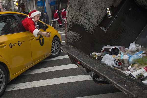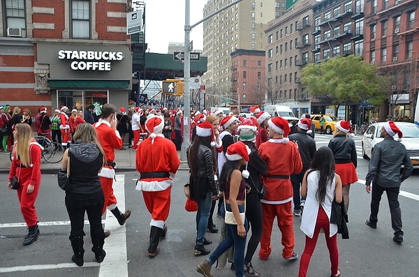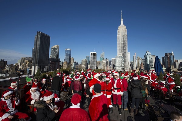 Хотя нью-йорский Сантакон по-прежнему остается самым большим и масштабным, он имеет противоречивую историю. В прошлом году городские бары закрывали двери перед всеми, кто был одет в красно-белый костюм, опасаясь последствий Сантакона: драк, блевотины и публичного мочеиспускания.
