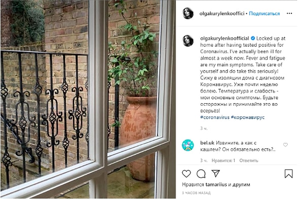 Ольга Куриленко, которая прославилась после роли в бондиане, заявила со своей странички в Инстаграм, что тест на коронавирус оказался положительным.