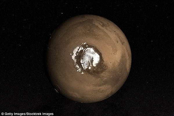 Исследование учёных из Юго-западного исследовательского института показывает, что крупное количество льда накоплено на полярных шапках Марса, большая часть его лежит на Северном полюсе.