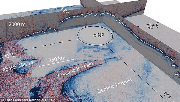 Учёные используют 3D-модель для изучения полярных шапок Марса и по изменению уровню льда пытаются восстановить доисторический климат.