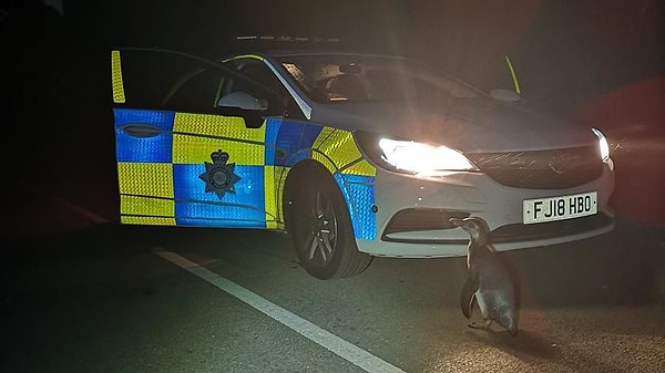 В Англии полицейские обнаружили пингвина Гумбольдта, сбежавшего с фермы, который медленно шел по обочине. Сотрудники полиции заявили, что дружелюбная птица благополучно доставлена домой после утренней прогулки.