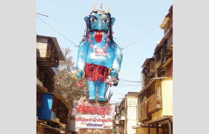 Специально для церемонии празднования прихода весны, в Мумбаи была сделана гигантская марионетка, похожая на монстра, которая будет представлять вирус. На марионетке под названием "Коронасур" было написано "Ковид-19", что является официальным названием вируса.