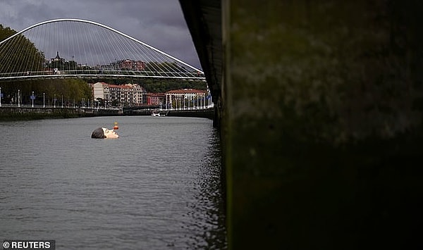 Жители Бильбао впервые увидели установку в прошлый четверг после того, как ее доставили на лодке и спустили в реку недалеко от центра города глубокой ночью.
