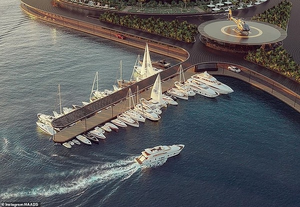К этому объекту, поддерживаемому серией плавучих платформ для защиты от неспокойной воды, можно будет добраться с пирса, соединенного с берегом, с вертолета или лодки.