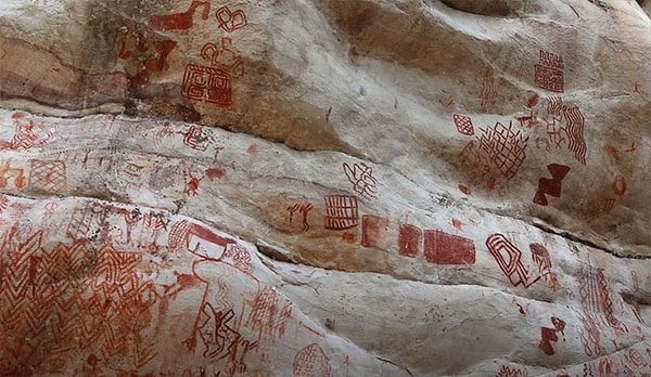 Десятки тысяч наскальных рисунков, созданных 12 500 лет назад, были обнаружены в Серраниа-ла-Линдоса, в отдаленных тропических лесах Амазонки. Это наскальная живопись длиною в 13 км.