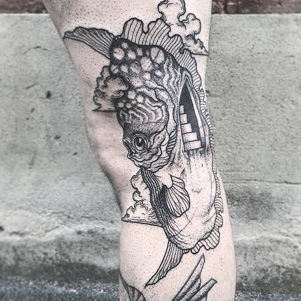18. Так, например, его татуировка с рыбой в согнутом состоянии конечности выглядит как единый субъект.