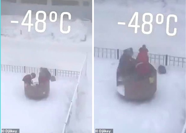 В российском городе Якутск детей отправили домой из школы, когда температура упала до минус 48 ° C, тогда местные ребятишки решили не оставаться дома, и... вышли на улицу поиграть.