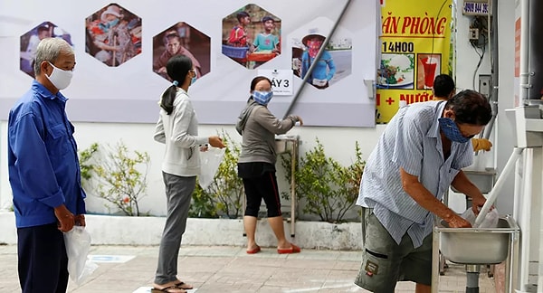 В крупнейшем городе Вьетнама, Хошимине, бизнесмен по имени Хоанг Туан Ань разработал машину, которая автоматически распределяет рис, чтобы помочь людям, которые потеряли работу из-за эпидемии, лишившись возможности покупать базовые продукты.