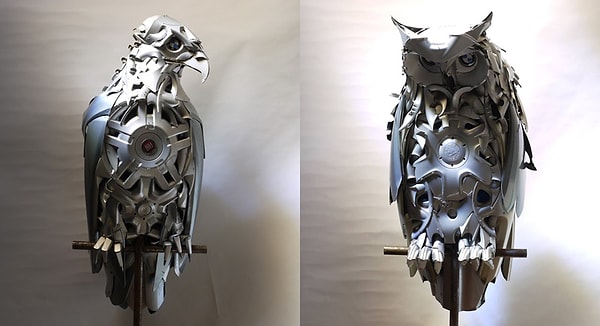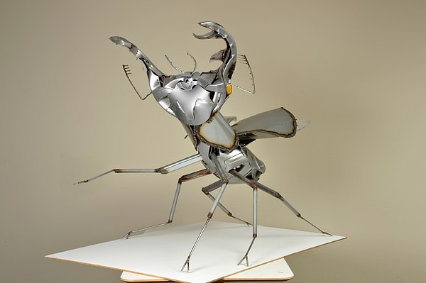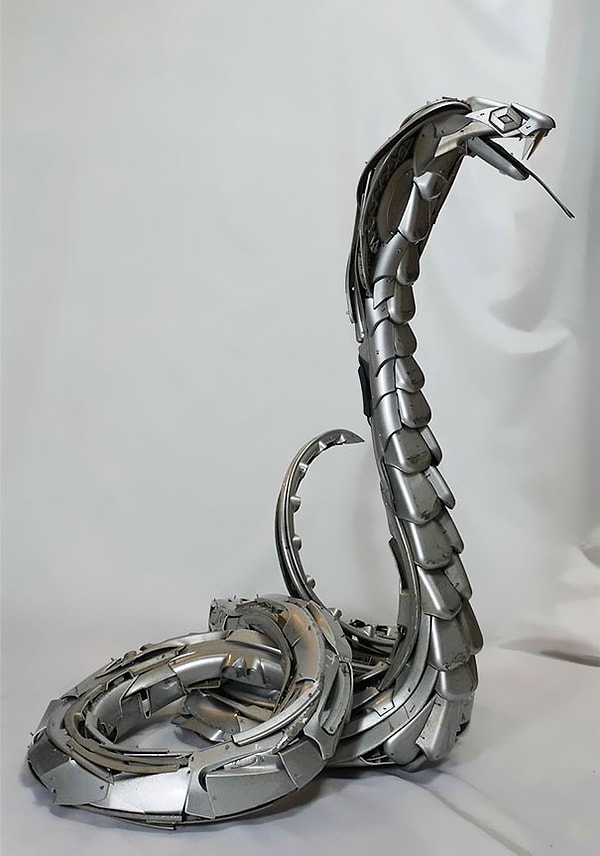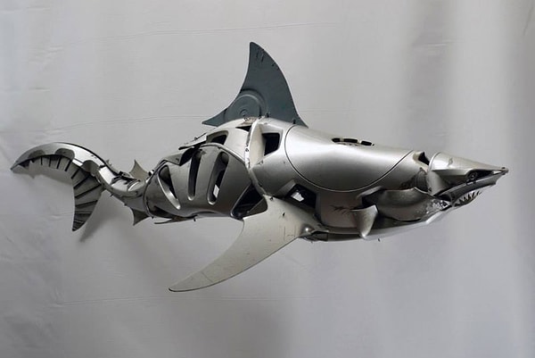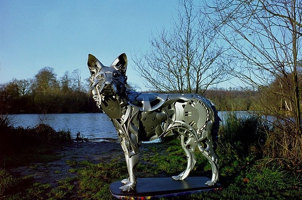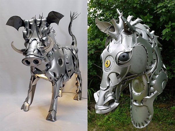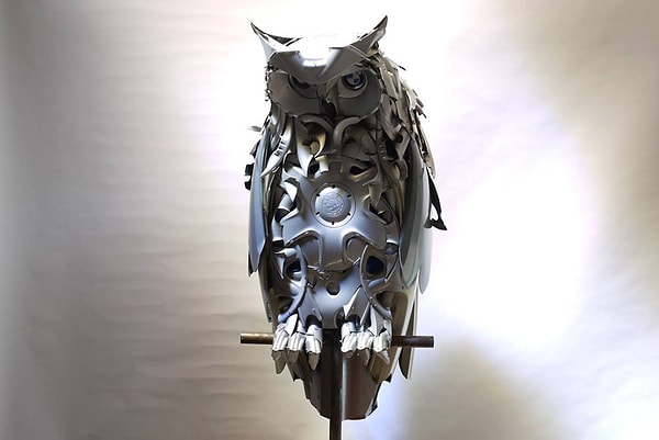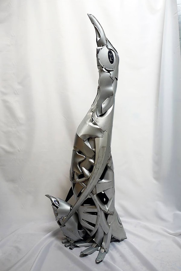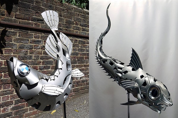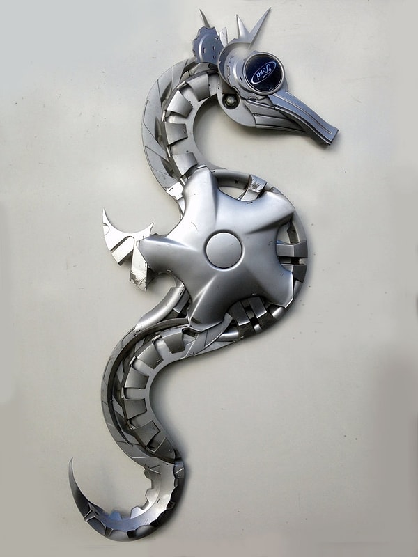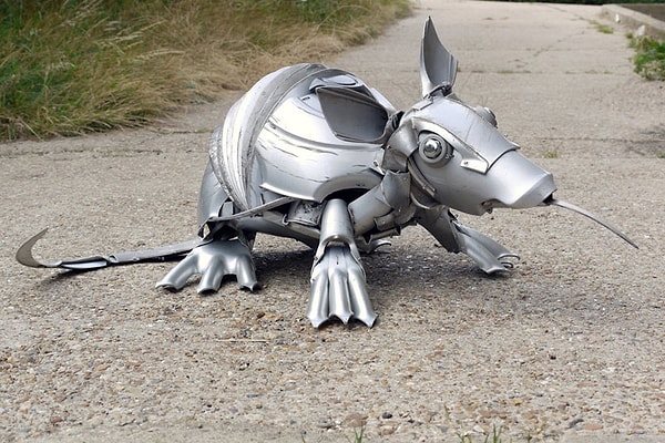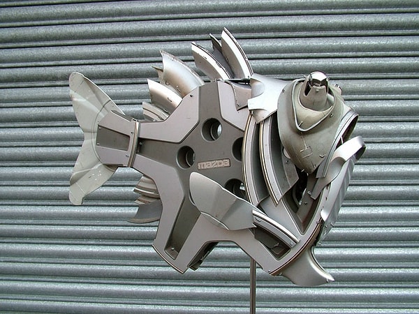 Птолемей Элрингтон – английский художник, верящий в то, что утилизация – это будущее нашей планеты. Его произведения четко отражают эту веру. То, что по мнению многих людей стало бесполезным и выбрасывается в мусорку или на обочину дороги, особенно автомобильные запчасти и колесные колпаки, становятся незаменимыми материалами для творчества Птолемея. Большую часть времени художник тратит на поиск таких деталей, искать которые приходится на обочинах автотрасс и свалках. Работы художника, сделанные из колпаков, покрышек, металлолома и тд., до сегодняшнего дня выставлялись в таких городах, как Лондон, Брайтон, Эдинбург, Барселона, Афины. Кроме того, покупатели этих скульптур есть и готовы заплатить от 200 до 10.000 фунтов за работу.