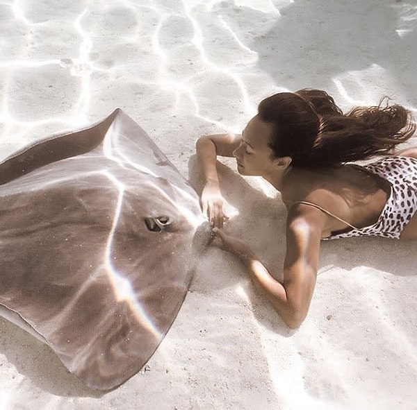 2. С детства она любила плавать вместе с дельфинами, скатами, черепахами, китами и даже... акулами