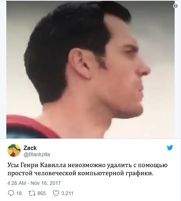 Если вы уже сходили на новый фильм от DC Comics «Лига справедливости», то, вероятно, заметили, что с лицом Супермена что-то не так… И не ошиблись, ведь Генри Кавиллу, исполнителю роли, для фильма удаляли усы цифровым методом. И интернет-общественности есть что сказать по этому поводу...