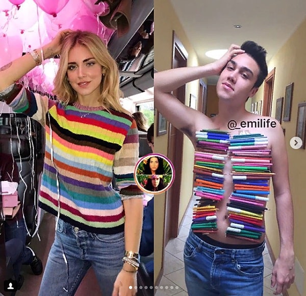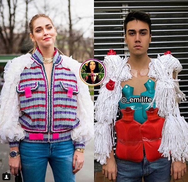 1. Феррари начал выкладывать свои пародии в 2014 году. Он создает аутфиты, используя подручные средства, которые находит дома.