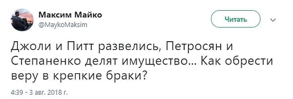 Если развод Анджелины Джоли и Брэда Питта заставил западную общественность разочароваться в любви, то у россиян еще оставалась надежда, последний, так сказать, оплот: брак самых знаменитых юмористов страны – Евгения Петросяна и Елены Степаненко. Но теперь и он рухнул: супруги разводятся и делят имущество в суде. Возможно ли личное счастье в шоу-бизнесе?