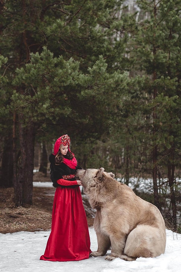 1. Российский фотограф Ольга Баранцева нередко устраивает волшебные фотосессии, запечатлевая людей с дикими животными.