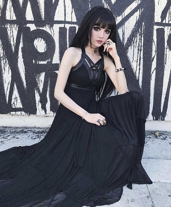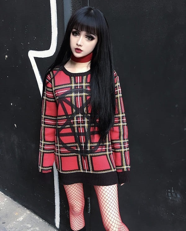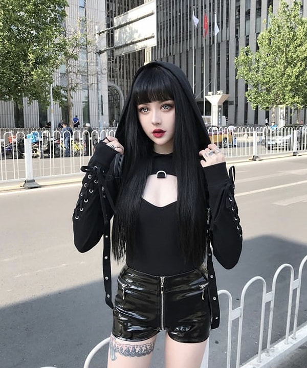 7. Волосы, черные, как вороное крыло, колготки в сетку, вызывающий внешний вид и точеная фигурка — Кина знает, как привлечь внимание