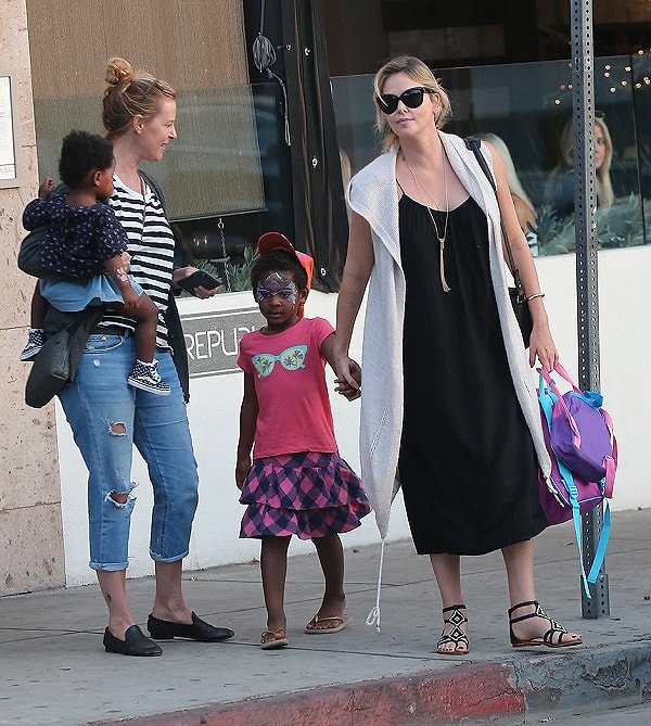 Актриса совсем не переживает насчет общественного мнения и не обращает внимания на критику. Шарлиз дает своему сынишке полную свободу в выборе предметов гардероба.