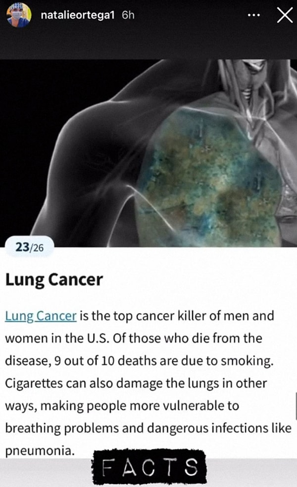Она опубликовала мем с изображением Голлума из «Властелина колец», высмеивающий проблемы с кожей и голосом, которые часто бывают у курильщиков, а также несколько постов с исследованиями об опасностях вдыхания табака.